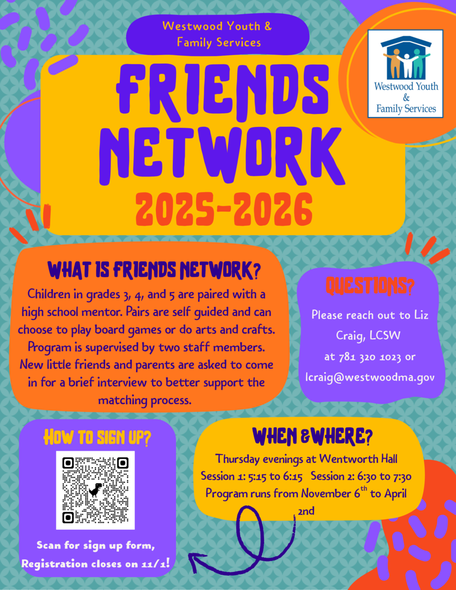I am reaching out to share that our Friends Network program still has openings for little friends. Students in 3rd to 5th grade can sign up and the program is free of charge. We are working hard to market the program to younger children as we have many high school students excited to participate.